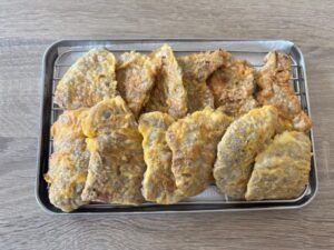 - Transfer the yukjeon to a paper towel to remove excess oil.