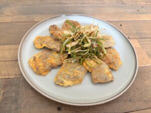 The gentle sizzle of beef in egg batter, the soft texture, and the warm, savoury aroma all echo Korea’s culinary heritage. And when paired with a crisp, slightly tangy green onion salad and a chilled glass of makgeolli, the dish becomes a perfect bridge between the old and the new nostalgia on a plate with a modern twist.