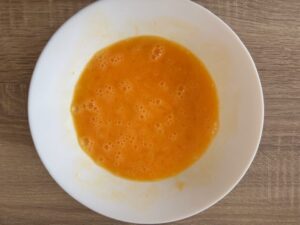 - Beat 2 eggs in a bowl and add a pinch of salt.