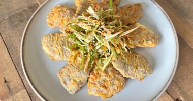 Beef Yukjeon (소고기육전) with Green Onion Salad (파채샐러드)