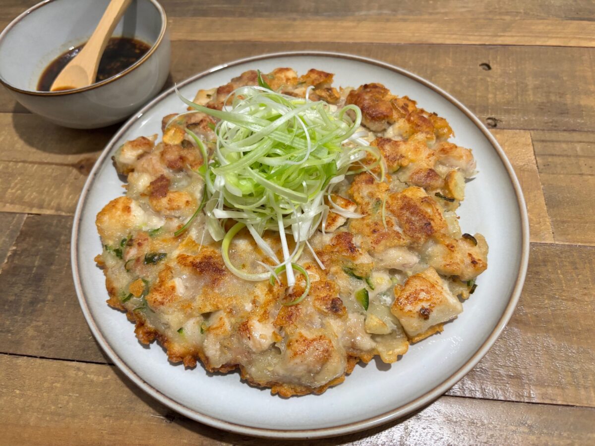 There’s something so comforting about the sizzle of a jeon on a hot pan. Pa-Dak-Jeon (Korean Green Onion Chicken Pancake) is one of those dishes that instantly feels like home, no matter where you are. It’s a little bit like fried chicken, a little bit like a pancake, crispy on the outside, juicy on the inside, and topped with a fresh tangle of green onions that make each bite bright and flavourful.