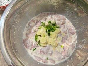 - Let it marinate for 10–15 minutes while you prepare the other ingredients.