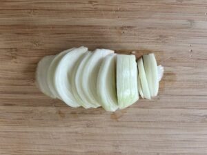 Slice half an onion into thin or medium slices. This helps it melt into the stew and sweeten the broth naturally.