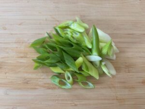 Slice the green onion diagonally into 1–2 cm pieces.Add it near the end to keep the flavour fresh and aromatic.