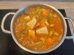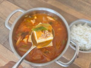 Everyone gathers around the table. A bowl of steaming rice waits beside the pot. When the stew is ladled out, it’s spicy, savory, slightly tangy, and deeply comforting—like a warm hug in food form. No matter how tired or stressed you were before, Kimchi Jjigae has a way of grounding you.